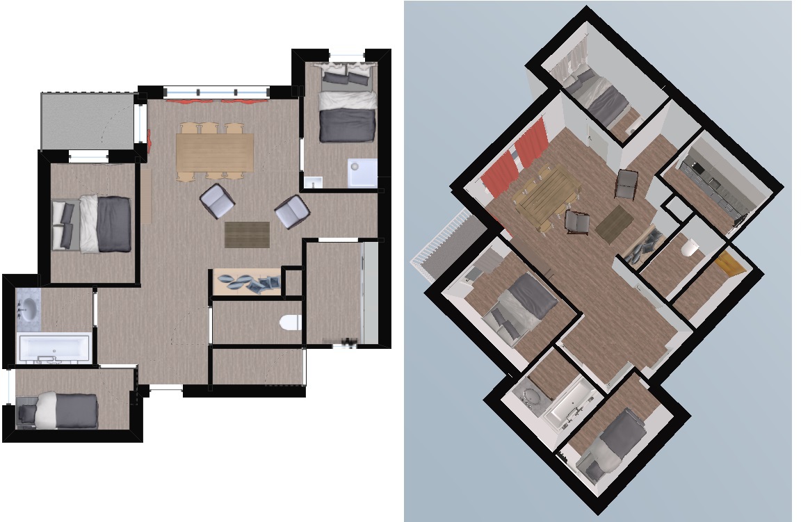 3 pièces avec cabine de 50m2 pouvant accueillir 6 personnes