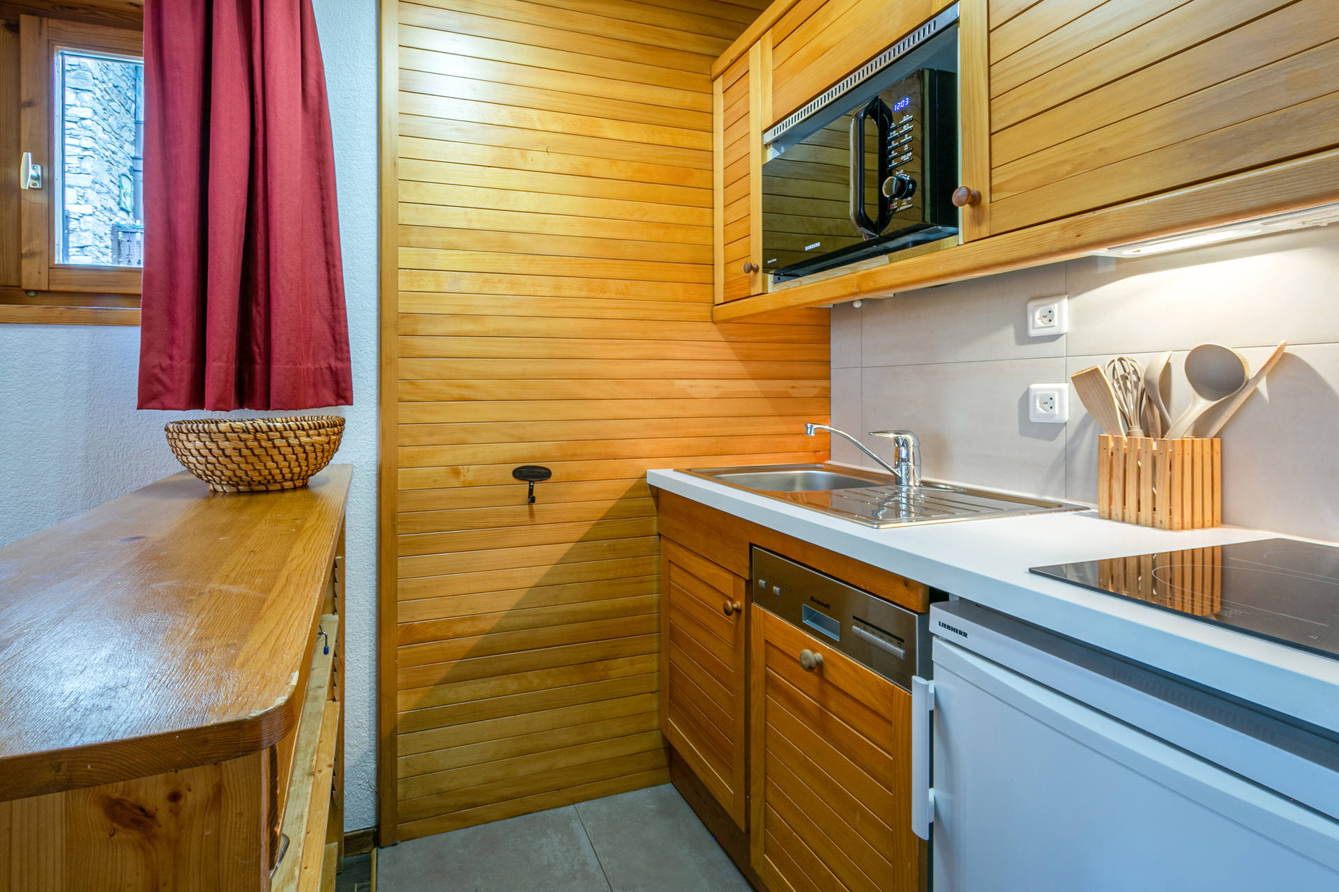 Equipée d'un lave-vaisselle, four micro-ondes avec grill, réfrigérateur, plaque induction