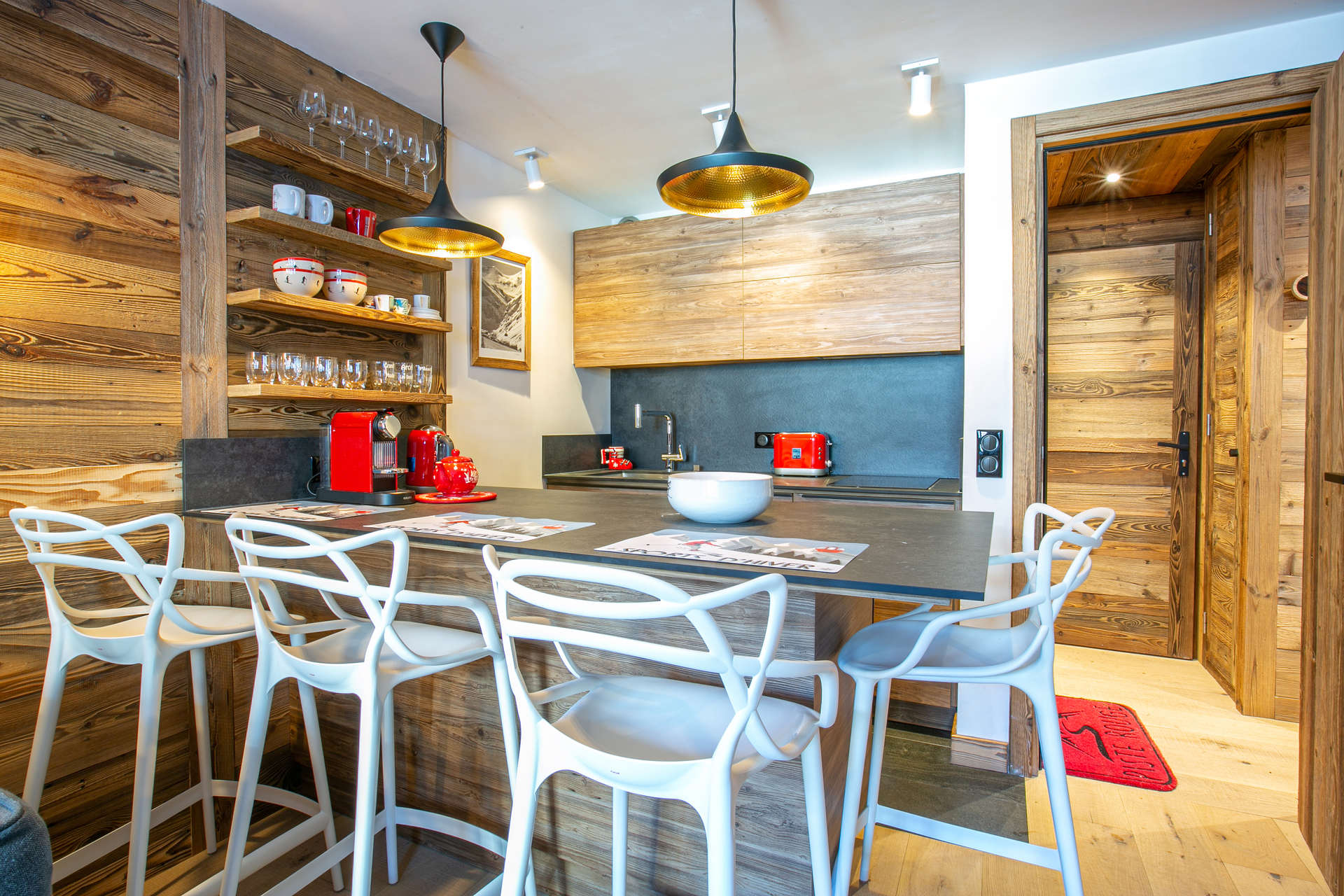 Equipée d'un micro-ondes/four, plaque vitrocéramique, réfrigérateur avec congélateur, hotte aspirante, lave-vaisselle, lave-linge avec sèche-linge