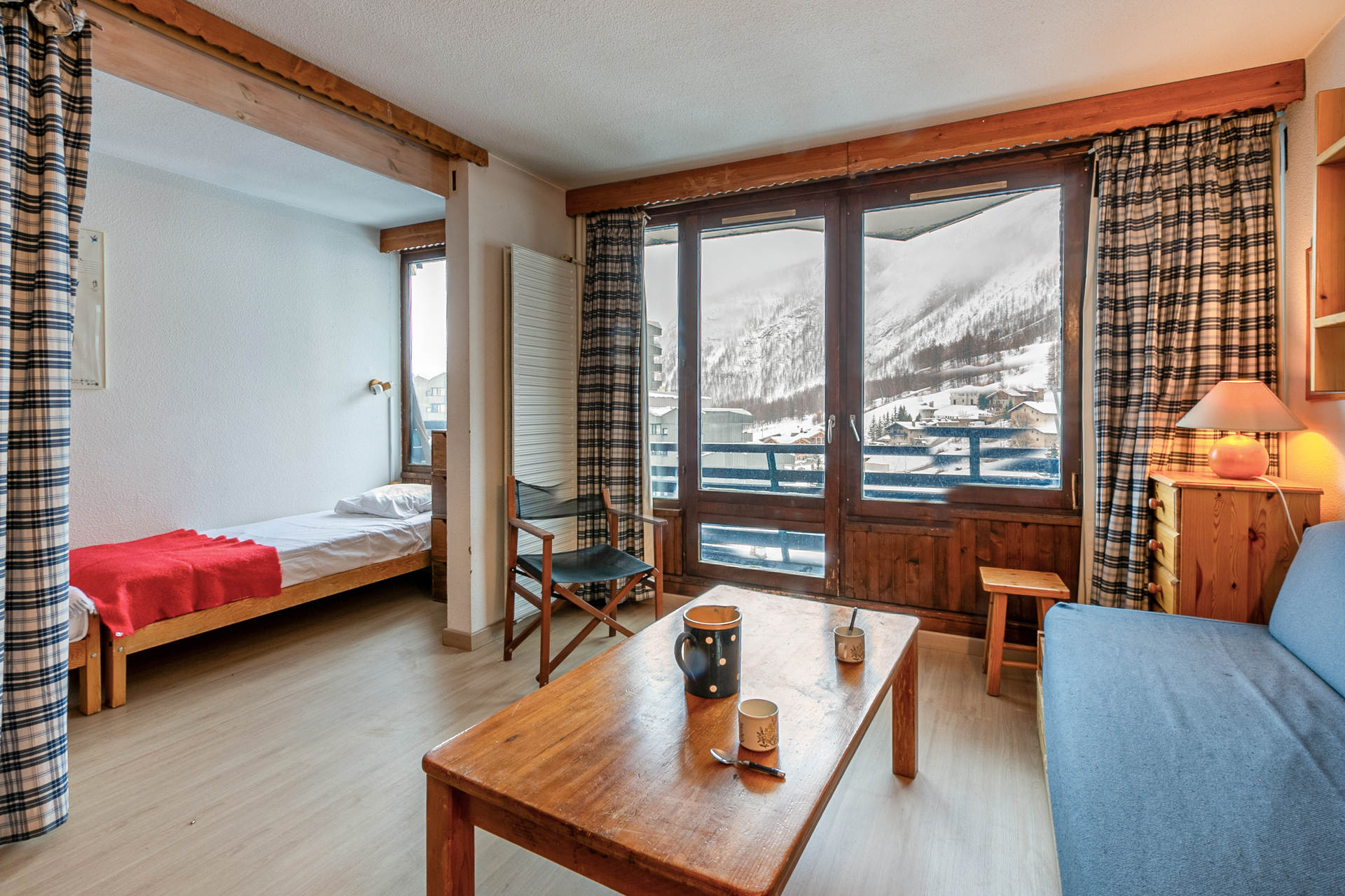 Appartement 1 pièce et demie dans le secteur de la Daille de 32m2 pouvant accueillir 4 personnes. Au 6ème étage dans la cage B de la résidence avec un balcon exposé Sud. Beau panorama sur les montagnes environnantes.