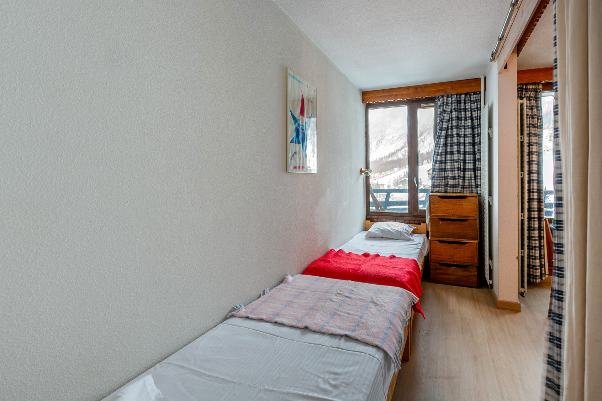 Chambre Demie-pièce séparée par rideau 2 lits simples 80x190cm