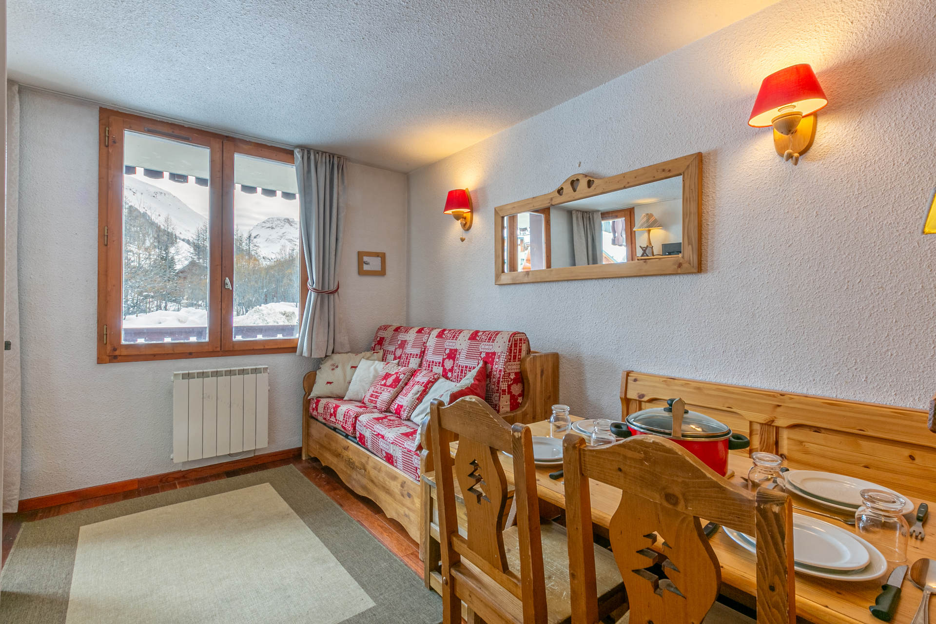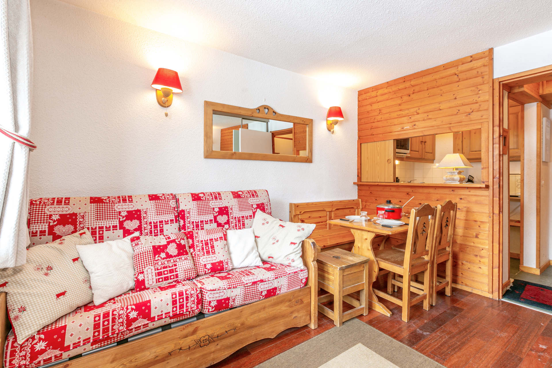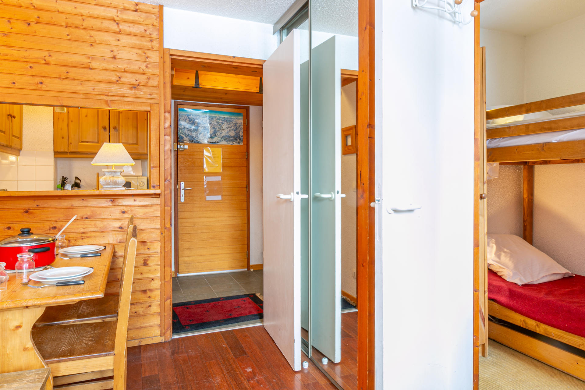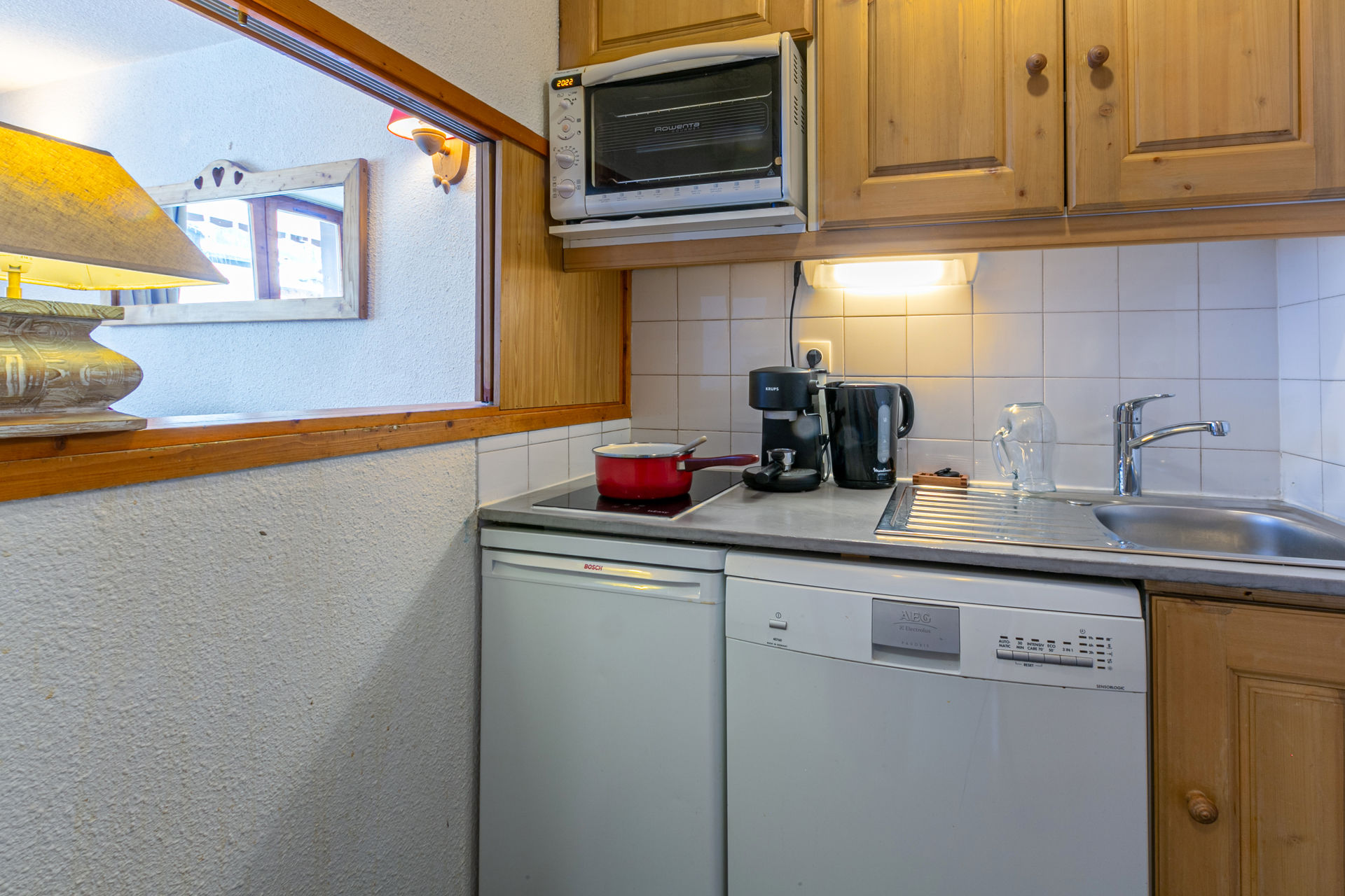 Studio avec cabine de 21m2 pouvant accueillir 4 personnes Au 1er étage de la résidence avec un balcon exposé Sud. Cuisine Equipée d'un lave-vaisselle, four, plaque électrique, réfrigérateur, four micro-ondes Petit électroménager: mixeur à soupe, caftière espresso, cafetière électrique, grille-pain, bouilloire électrique Séjour 1 canapé-lit 2 personnes 140x190 cm Télévision écran plat avec lecteur DVD Base Iphone avec radio Cabine 2 lits superposés 80x190 cm Sanitaire Salle de bain WC indépendant Les + de l'appartement WIFI Appartement coquet de bon standing Casier à ski N° 1.4 Lits faits à l'arrivée Ménage fin de séjour inclus Draps et serviettes de toilettes inclus Les - de l'appartement Pas de parking Non fumeur Animaux refusés