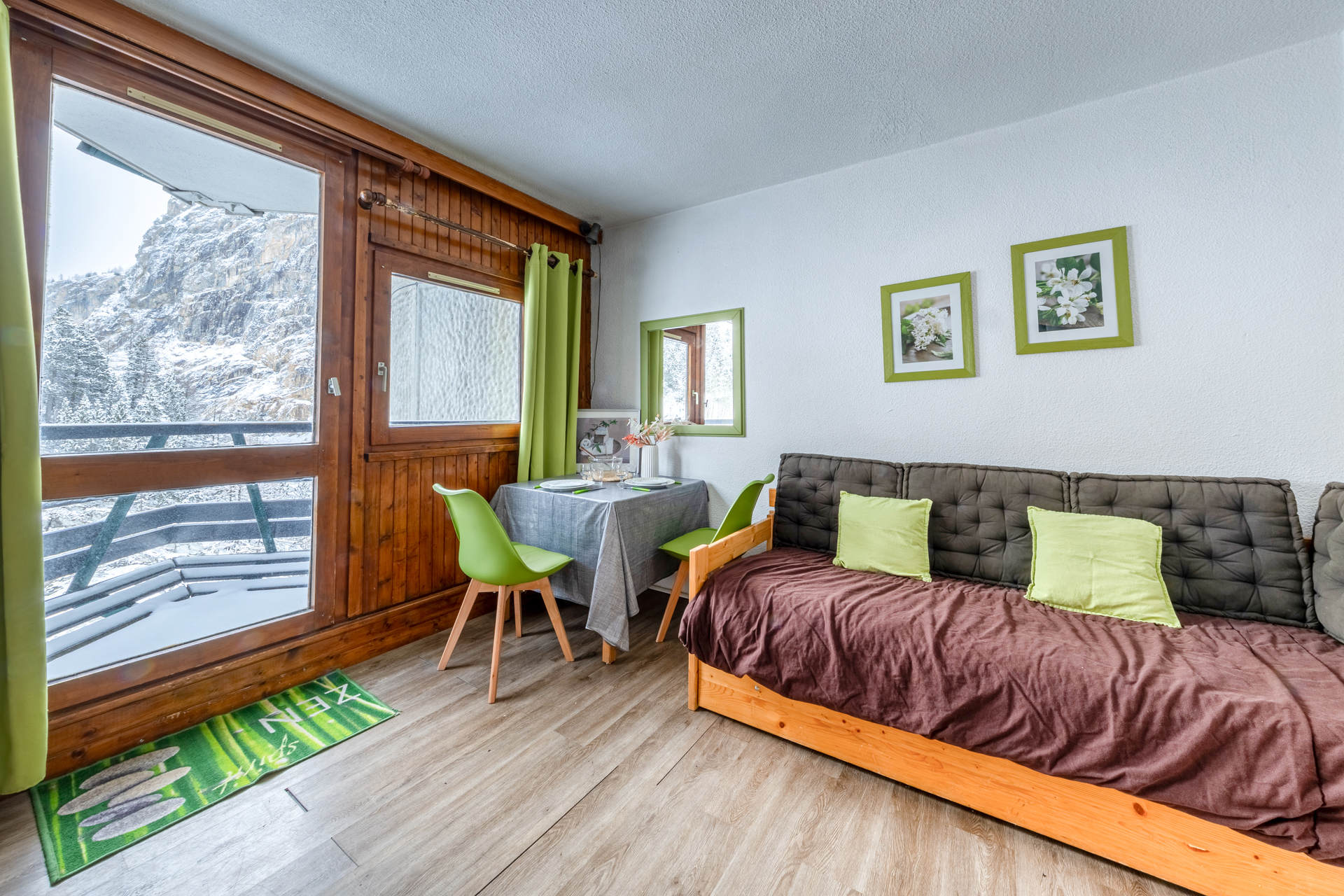 A proximité du centre commercial (commerces, restaurants, location de skis, cours de skis…).