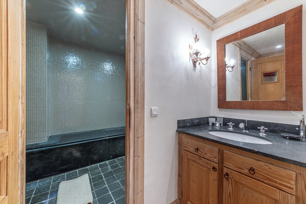 Dans une résidence de standing, ce charmant appartement d'environ 140m² vous séduira par son cadre paisible et verdoyant au pied des pistes. Il se compose de trois chambres dont une superbe suite parentale avec dressing. Son espace de vie généreux équipé d'une cheminée est un véritable lieu de partage. Son hammam invite également à la détente après une journée de ski. Ce bien rare, conjuguant à merveille authenticité alpine et prestations haut de gamme, est également vendu avec un studio indépendant d'environ 18 m² qui sera idéal pour recevoir famille et amis. Il est completé par une grande cave, un casier à skis et un emplacement de stationnement. Copropriété de 6 lots (Pas de procédure en cours). Charges annuelles : 14000 euros.