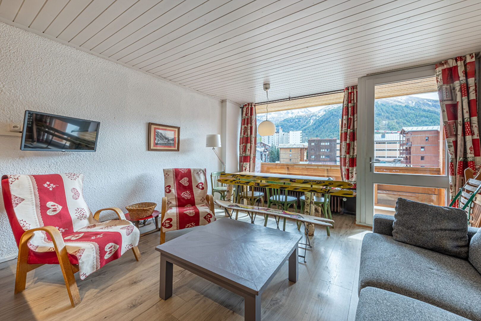 Situé dans une résidence à moins de 10 minutes à pied du coeur de la station et profitant d'arrêts de bus devant ses portes, découvrez cet appartement de 47 m². Il comprend 2 chambres (dont une cabine), une salle de bains, WC, une cuisine ouverte et un confortable séjour avec coin repas ouvrant sur un généreux balcon à la vue incroyable sur le village et Solaise. Un bien à découvrir rapidement ! Il est vendu avec un casier à skis. Copropriété de 222 lots (Pas de procédure en cours). Charges annuelles : 4271 euros.