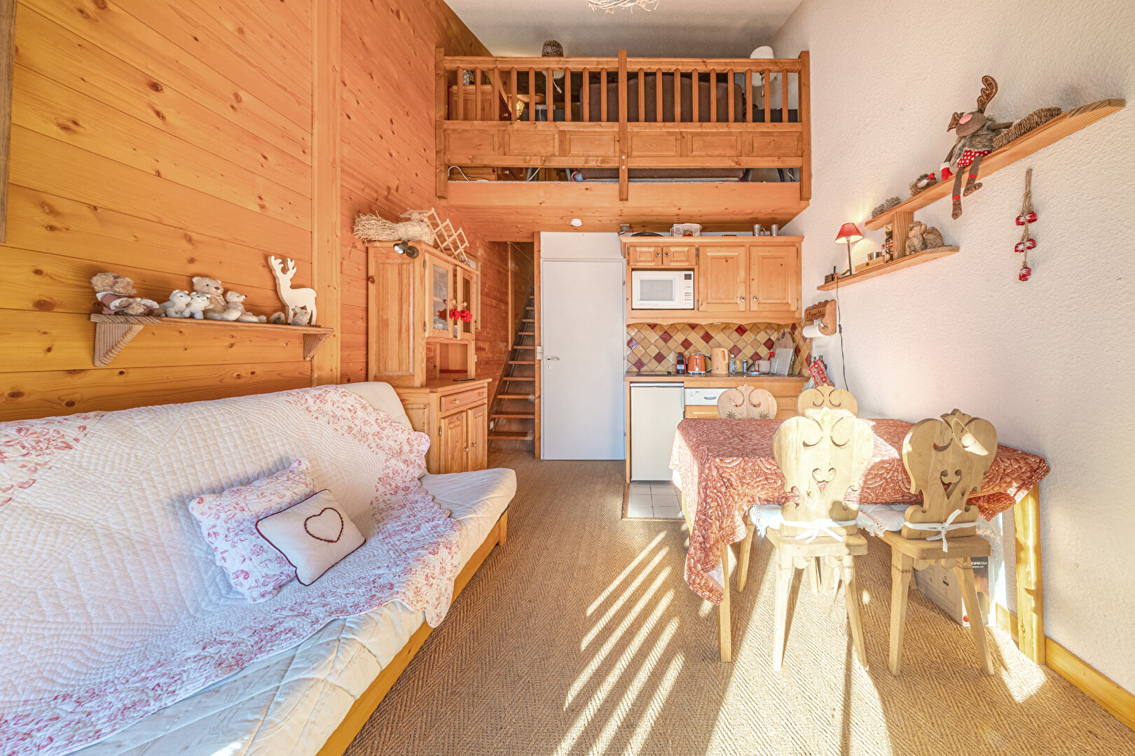 A deux pas du coeur de la station, venez découvrir ce chaleureux appartement de 34 m². Situé en dernier étage, il offre de beaux volumes et hauteurs sous plafond. Dans l'entrée on trouve un dégagement avec lits superposés pour les enfants, une salle de douche et un WC indépendant, le séjour/cuisine très lumineux ouvre direction Sud-Est sur une magnifique vue sur le massif de Solaise. A l'étage, une agréable mezzanine accueille un lit double et de très nombreux rangements. Un pied a terre cosy et idéal pour vos prochains séjours à la montagne ! Copropriété de 93 lots (Pas de procédure en cours). Charges annuelles : 2800 euros.