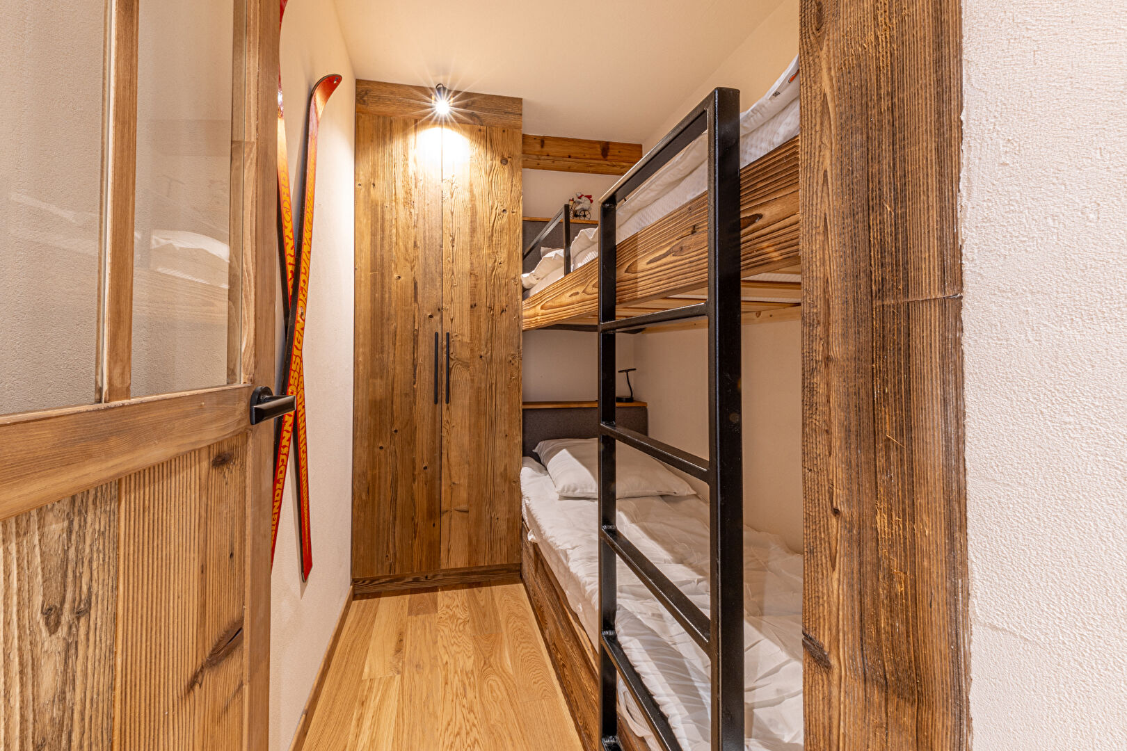 Découvrez cet appartement entièrement rénové situé en plein coeur de Val d'Isère qui bénéficie d'un emplacement exceptionnel, à quelques pas des pistes, des commerces et de toutes les commodités de la station. Pensé comme un véritable cocon de montagne, il intègre un grand séjour avec cuisine ouverte et balcon, une chambre cabine dédiée aux enfants, parfaitement optimisée et conçue comme un véritable refuge, ainsi qu'une chambre double avec coin bureau. Idéal pour les séjours en famille, chaque détail ayant été soigneusement travaillé pour offrir confort, fonctionnalité et convivialité. Avec son adresse privilégiée, son charme unique et son atmosphère alpine raffinée, cet appartement constitue un pied-à-terre rare à Val d'Isère, aussi agréable à vivre qu'idéal pour un investissement locatif haut de gamme. Il est vendu avec une cave de rangement et un casier à skis. A découvrir sans tarder ! Copropriété de 72 lots. Charges annuelles : 1530 euros.