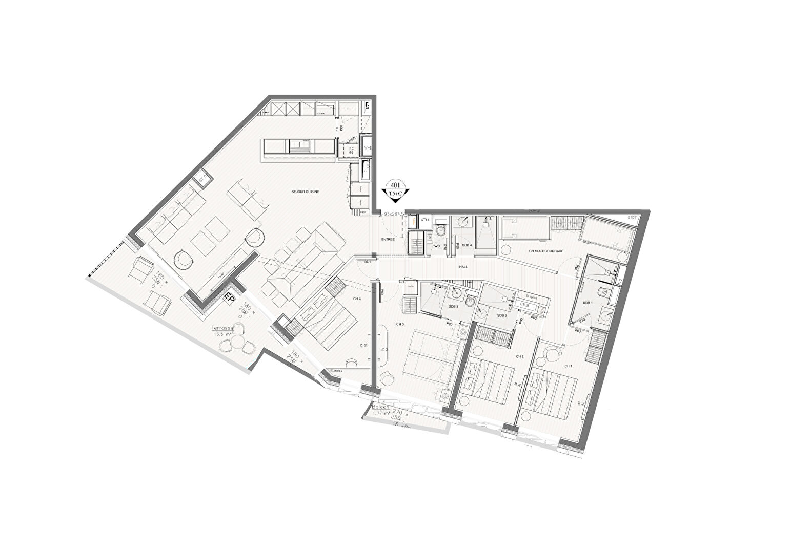 Cet appartement à l'adresse exclusive offre un cadre idéal pour savourer la montagne en toute saison. Pensé pour recevoir famille et invités dans un confort optimal, il se compose de trois chambres en suites doubles, ainsi qu'une chambre double et un dortoir pour 4 enfants partageant une salle de douche. Le séjour, baigné de lumière, accueille une cuisine ouverte aux lignes contemporaines et s'ouvre sur une belle terrasse offrant un prolongement naturel de l'espace de vie et une atmosphère chaleureuse en toute saison. L'appartement s'inscrit au sein d'une résidence confidentielle aux prestations soignées, proposant un espace bien-être complet avec salle de fitness, piscine, sauna et salle de massage. Ce bien rare constitue un investissement patrimonial de qualité, aussi parfait pour un usage familial qu'un investissement locatif avec le crédit de TVA disponible dans le cadre d'une exploitation parahôtelière et des frais de notaires réduits. Il est vendu avec 2 casiers à skis/caves et deux places de stationnement couvertes. Copropriété de 16 lots.