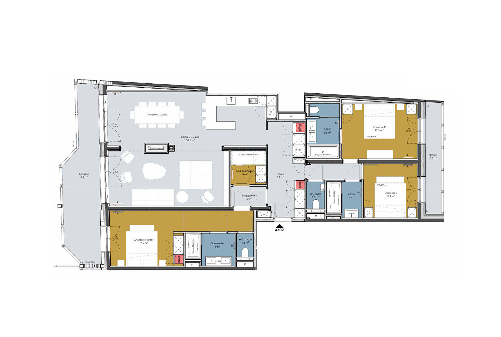 Au 3ème étage d'une résidence neuve et intimiste, découvrez ce grand appartement de 128,50 m² comprenant un beau séjour d'environ 50 m² ouvrant sur une grande terrasse exposée Sud. Une chambre de maître, deux belles suites ainsi qu'un espace enfants avec lits superposés complètent ce bien. Un bien rare alliant volumes généreux et prestations soignées, au sein d'une résidence située au coeur de la station. Ce bien est vendu avec un casier à skis, une cave de rangement et deux stationnements en sous-sol. Crédit de TVA possible dans le cadre d'une mise en location avec activité de para-hôtellerie. Livraison Décembre 2027. Copropriété de 11 lots (Pas de procédure en cours).