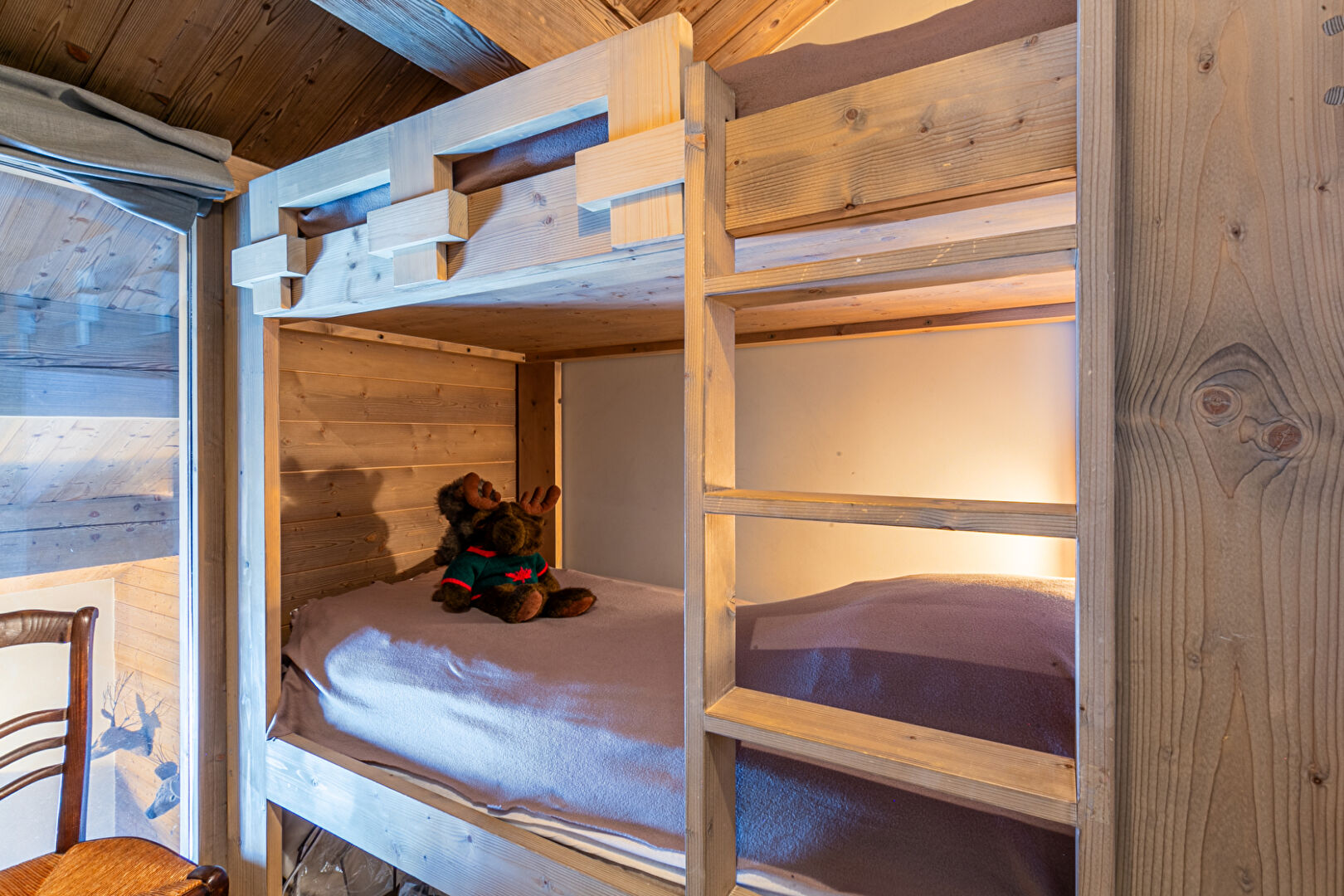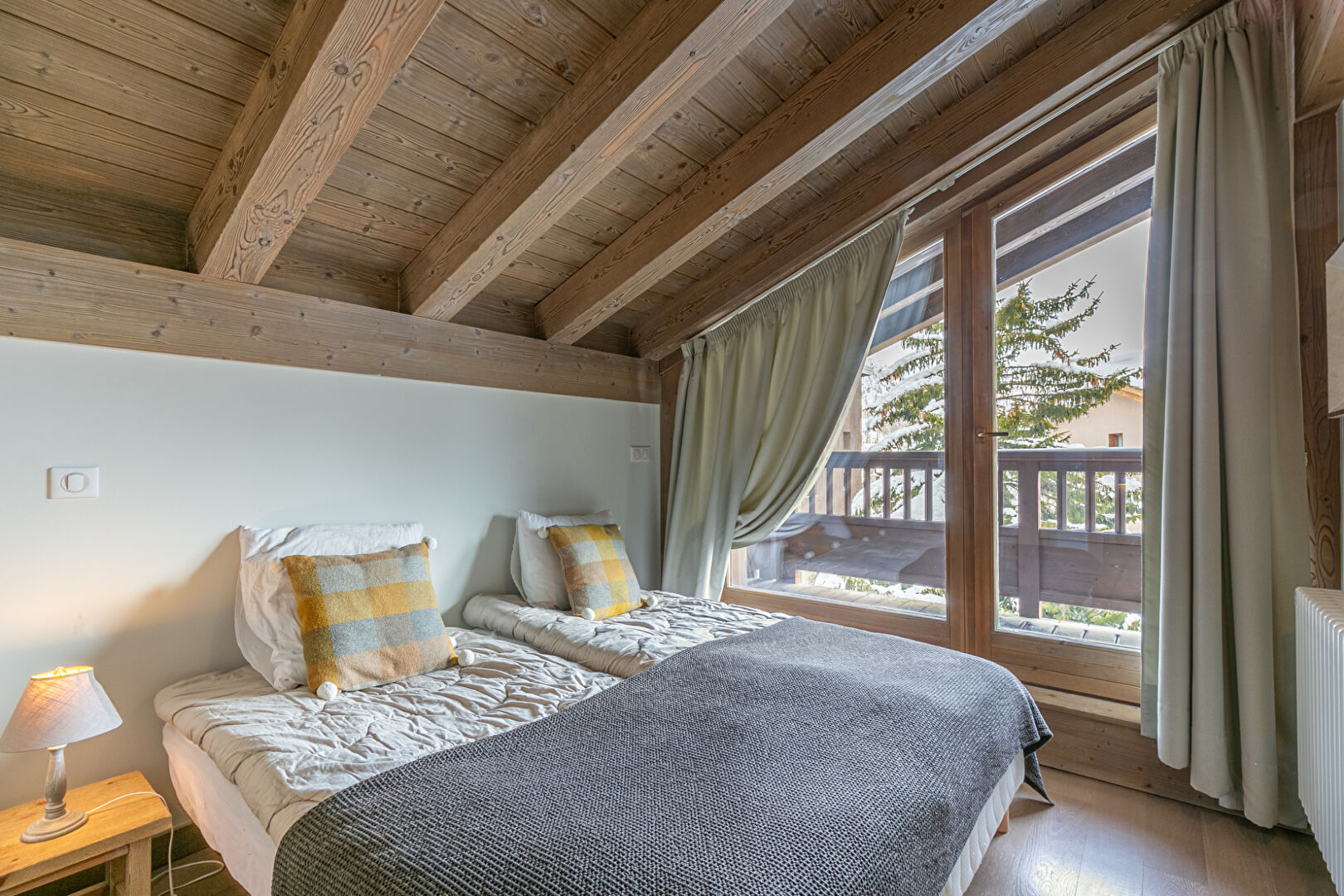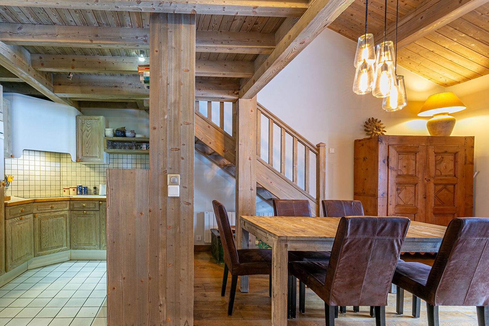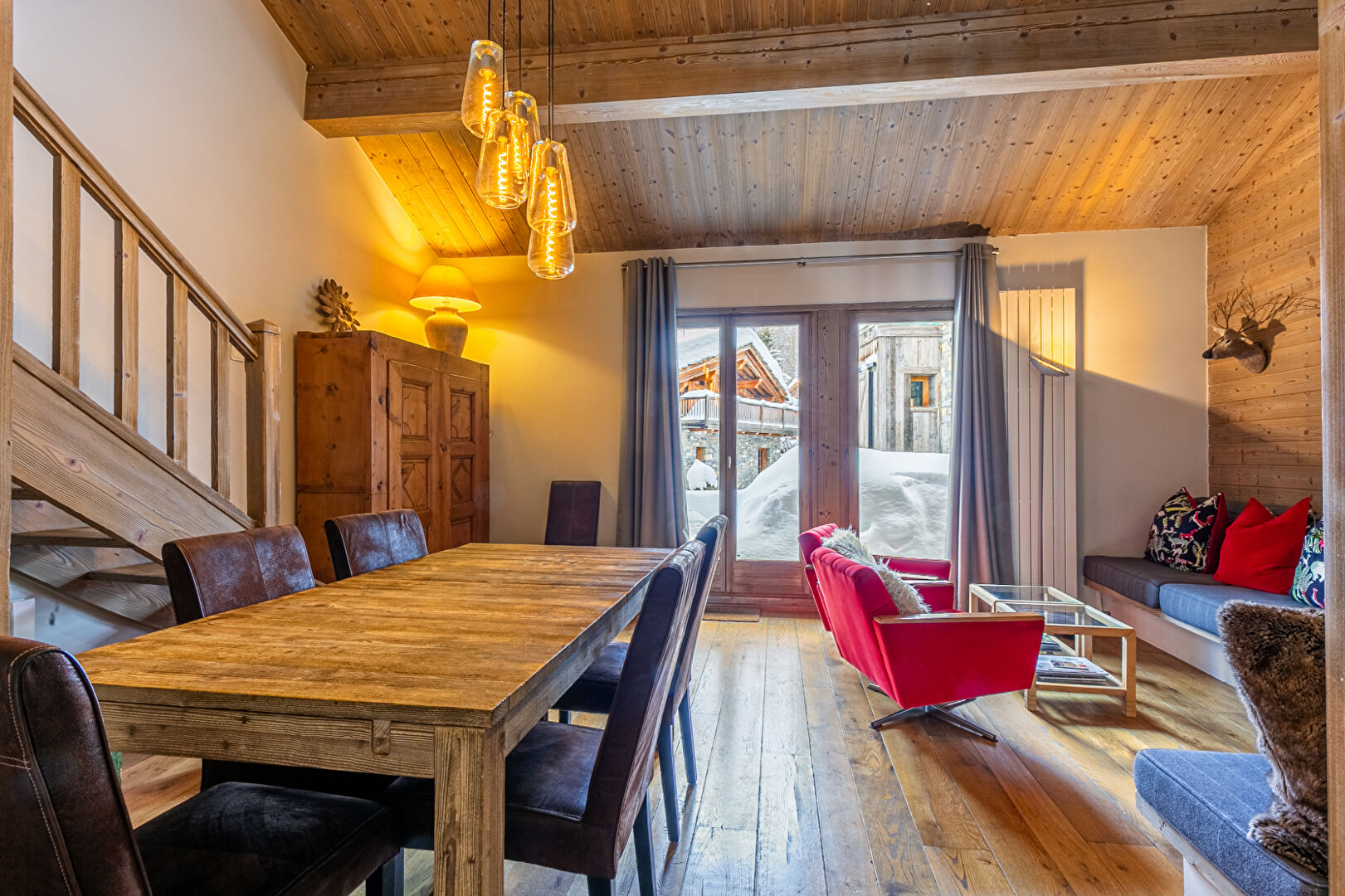 Magnifique appartement duplex d'environ 90 m² au sein d'une très petite copropriété. Situé en dernier étage, il offre un beau séjour sous charpente avec cheminée, une cuisine ouverte, un WC indépendant et une chambre maître en suite avec sa salle de bain. A l'étage, une mezzanine ouverte sur le séjour avec canapé-lit, une cabine avec 2 lits superposés, une salle de bains, un WC, et deux belles chambres doubles sous charpente. Ce bien bénéficie d'une situation privilégiée à deux pas du front de neige et du centre et de vues sur le Vieux Village ses toits de lauzes et le clocher. Le plus de ce bien: une grande cave de 20,91m² ainsi qu'une belle terrasse ensoleillée. Copropriété de 4 lots (). Charges annuelles : 1977 euros.