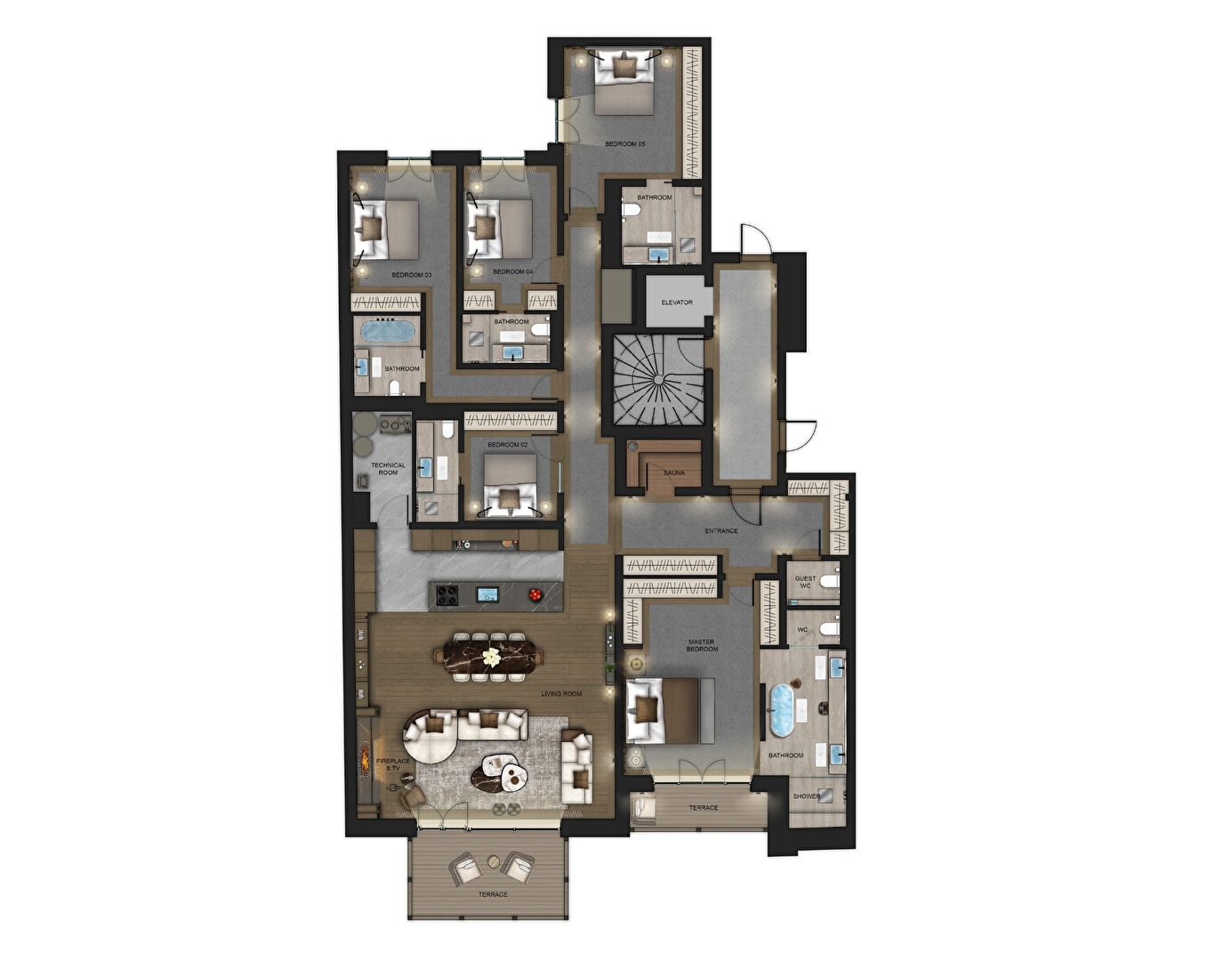En plein coeur de Val d'Isère, des séjours inoubliables vous attendent dans cet appartement tout confort et aux prestations haut de gamme, inédites pour un bâtiment résidentiel ! Ce fabuleux appartement vous propose 4 chambres en suite pour l'accueil de vos invités et une incroyable chambre de maître de près de 45m² ouvrant sur un balcon orienté Sud pour vous. Un spacieux séjour avec cheminée et terrasse appelle aux moments de convivialité. Il sera livré en décembre 2025, son intérieur est personnalisable selon vos souhaits. Il est vendu avec un casier à skis et 2 garages au sous-sol de la résidence. Copropriété de 12 lots (Pas de procédure en cours).