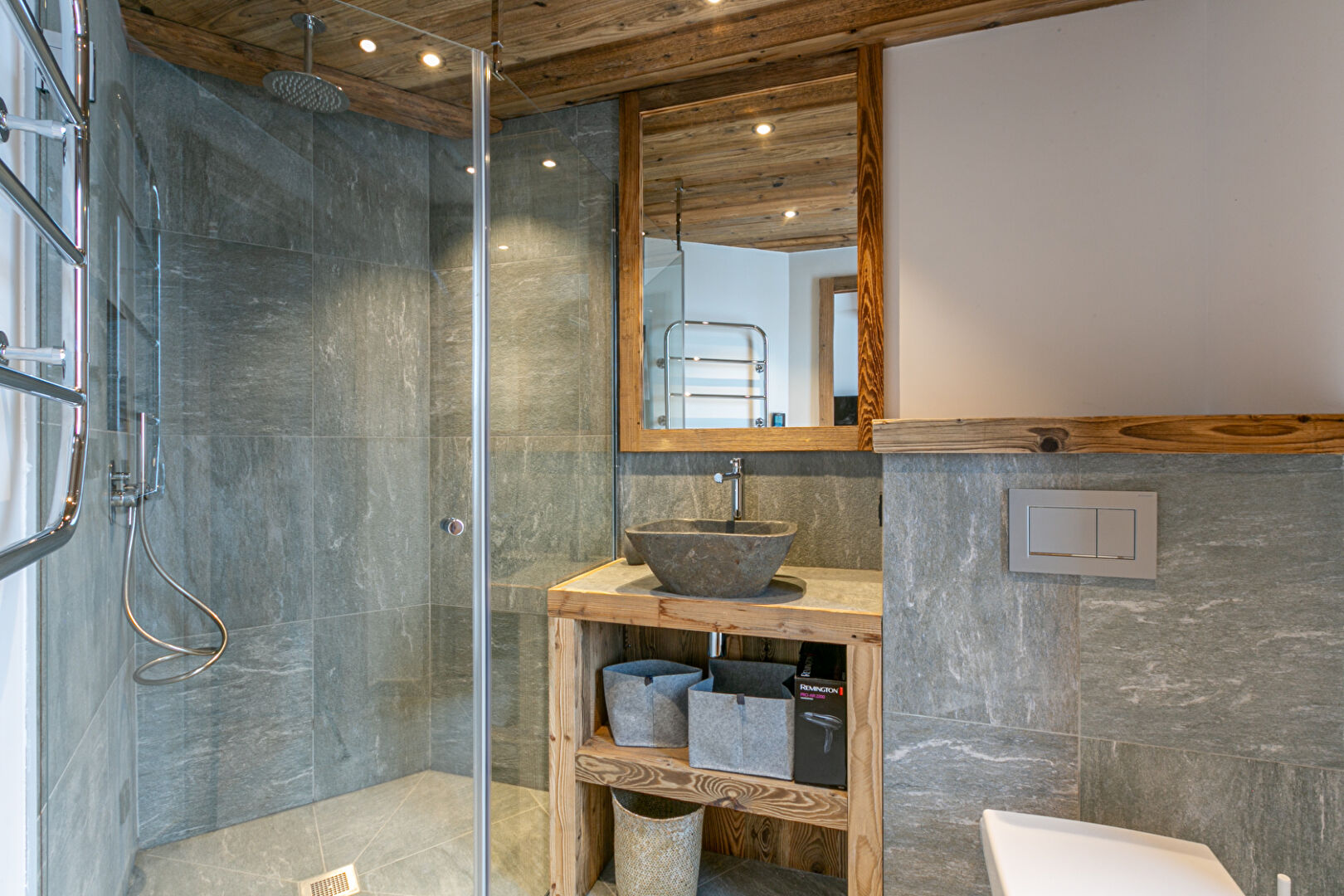Situé dans un quartier résidentiel recherché pour sa tranquillité, cet appartement-chalet de prestige développe 160 m² répartis sur 4 niveaux. Conçu pour accueillir 10 personnes, il intègre 4 chambres en suite ainsi qu'une chambre d'enfants. Il bénéficie d'une atmosphère chaleureuse et raffinée sublimée par de beaux volumes et un panorama remarquable sur les montagnes et les toits de Val d'Isère observable depuis ses 2 balcons-terrasses. Son espace de vie incarne parfaitement l'esprit montagne contemporain, il propose une cuisine ouverte et un coin repas convivial, un salon confortable avec cheminée à bois et de généreuses baies vitrées. Il est vendu avec un rangement à skis et un garage double. Ce bien rare combine charme alpin chic et prestations premium, une opportunité idéale pour une résidence familiale comme pour un investissement haut de gamme en station. Copropriété de 2 lots (Pas de procédure en cours).