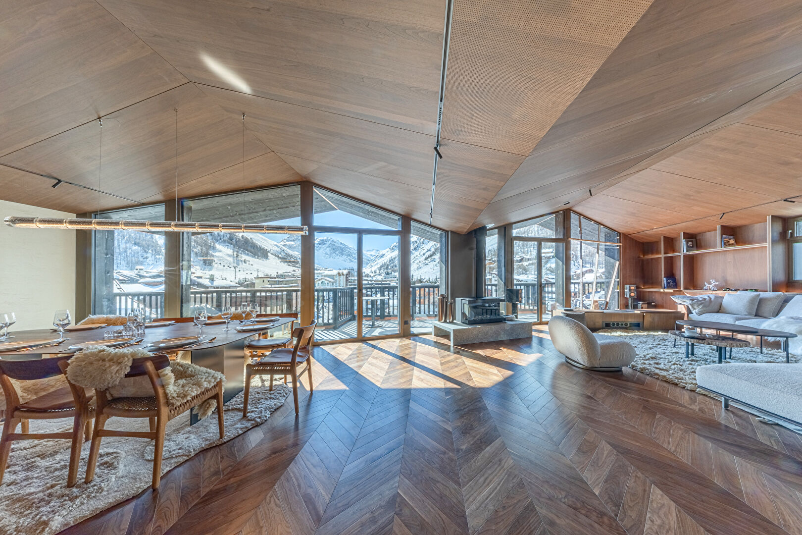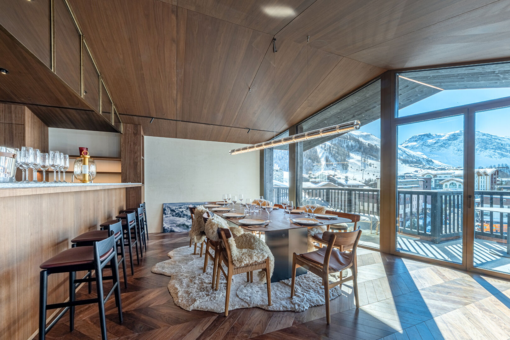 Situé au coeur de Val d'Isère, venez découvrir le penthouse dénommé « LE CHALET DE CRISTAL ». Desservi de manière privative et sécurisée par ascenseur ce bien d'exception propose 316 m² habitables. Il tient son appellation à ses nombreux vitrages au Nord et au Sud invitant littéralement la montagne en son intérieur. Il intègre 4 chambres en suite, une salle de sport, un sauna, un jacuzzi avec verrière mobile en toiture qui offre une expérience d'immersion alpine unique ! Au Sud, sa pièce de vie aux volumes généreux et aux ouvertures nombreuses vous propose une vue plongeante sur le village, un large et stupéfiant panorama comprenant les monts Solaise et Bellevarde. Un lieu aussi convivial qu'époustouflant, un intérieur raffiné, un ensoleillement rare à Val d'Isère, constituent les atouts majeurs de cette propriété à l'ADN singulier. Copropriété de 52 lots.