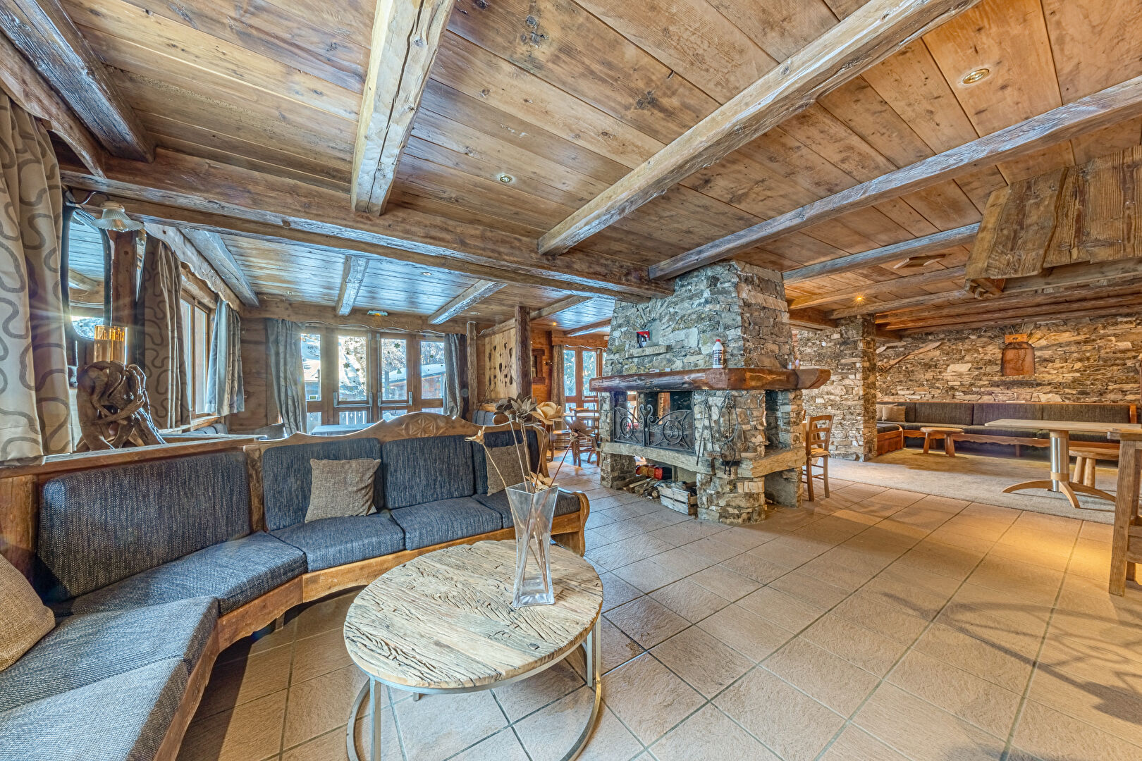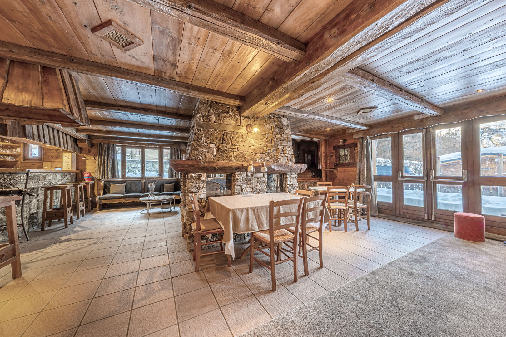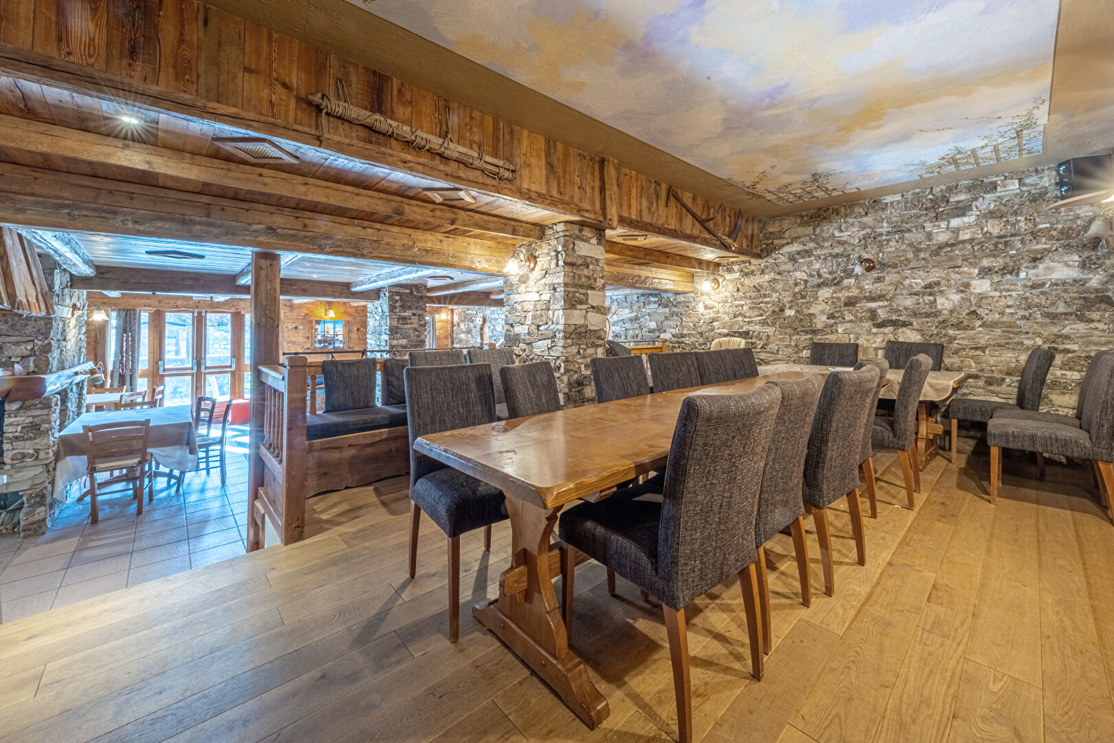Au coeur du hameau pittoresque du Laisinant qui profite d'un accès et d'un retour skis aux pieds, découvrez ce magnifique chalet de caractère, ancien hôtel-restaurant, de près de 660 m² offrant un superbe potentiel de réaménagement et de beaux volumes. Actuellement distribué sur 5 niveaux, il offre : En sous-sol : 2 garages, 2 logements pour le personnel, une lingerie, des sanitaires, diverses réserves et chambre froide. Au rez-de-chaussée : l'ancienne réception de l'hôtel, un bureau, le bar et la salle de restaurant articulés autour d'une magnifique cheminée centrale en pierre et ouvrant sur une superbe terrasse regardant la Face de Bellevarde. Les étages 1 et 2 accueillent 11 chambres en suite. Au 3ème et dernier étage, avec de belles vues dégagées, un espace détente comprenant : salle de sport, sauna et hammam.