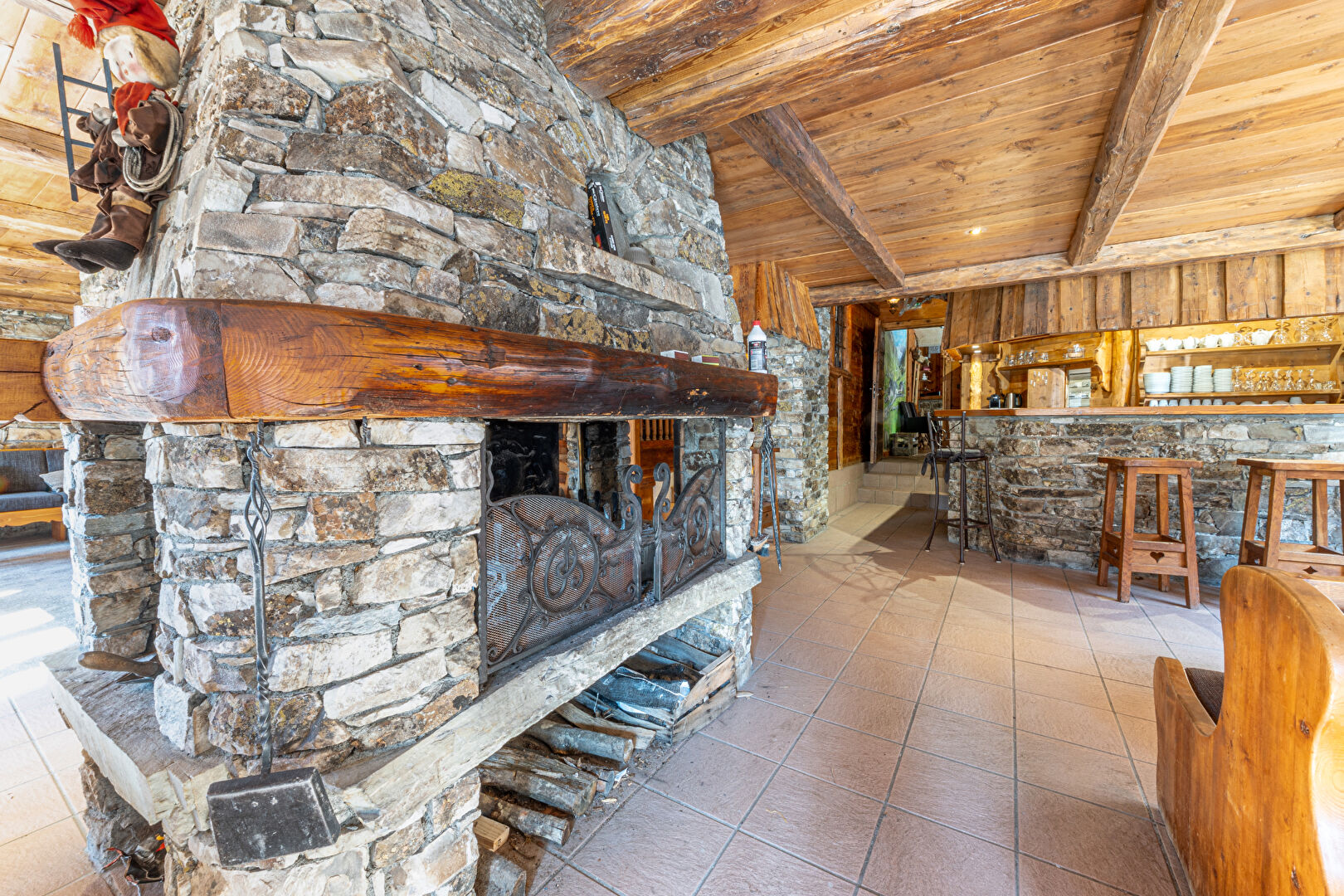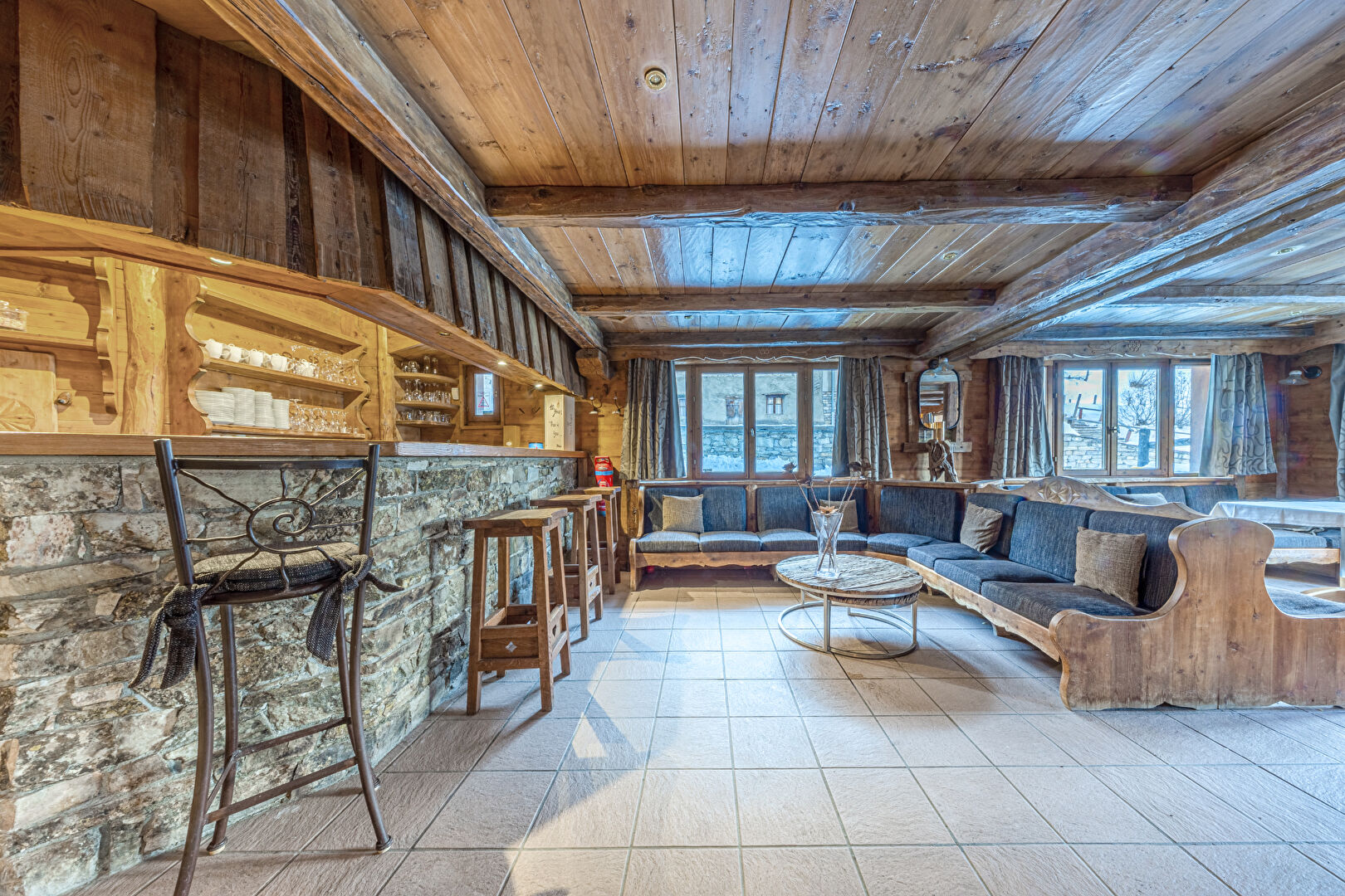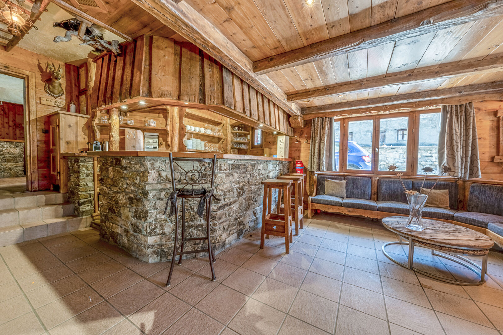 Au coeur du hameau pittoresque du Laisinant qui profite d'un accès et d'un retour skis aux pieds, découvrez ce magnifique chalet de caractère, ancien hôtel-restaurant, de près de 660 m² offrant un superbe potentiel de réaménagement et de beaux volumes. Actuellement distribué sur 5 niveaux, il offre : En sous-sol : 2 garages, 2 logements pour le personnel, une lingerie, des sanitaires, diverses réserves et chambre froide. Au rez-de-chaussée : l'ancienne réception de l'hôtel, un bureau, le bar et la salle de restaurant articulés autour d'une magnifique cheminée centrale en pierre et ouvrant sur une superbe terrasse regardant la Face de Bellevarde. Les étages 1 et 2 accueillent 11 chambres en suite. Au 3ème et dernier étage, avec de belles vues dégagées, un espace détente comprenant : salle de sport, sauna et hammam.